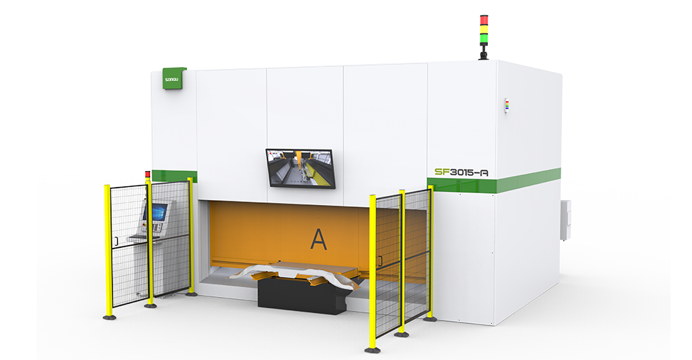 松谷激光科技SF系列三维五轴光纤激光切割机,轻量化高强度铸铝横梁,动态性能好,响应速度快,定位精准;高端 5轴联动数控系统,智慧大脑,高柔性,高精度,稳定性好,全封闭式设计,配置门禁系统等安全防护功能,确保安全生产适用于汽车热成型零部件、3D 金属成型件、曲面件,异形管材等加工领域。